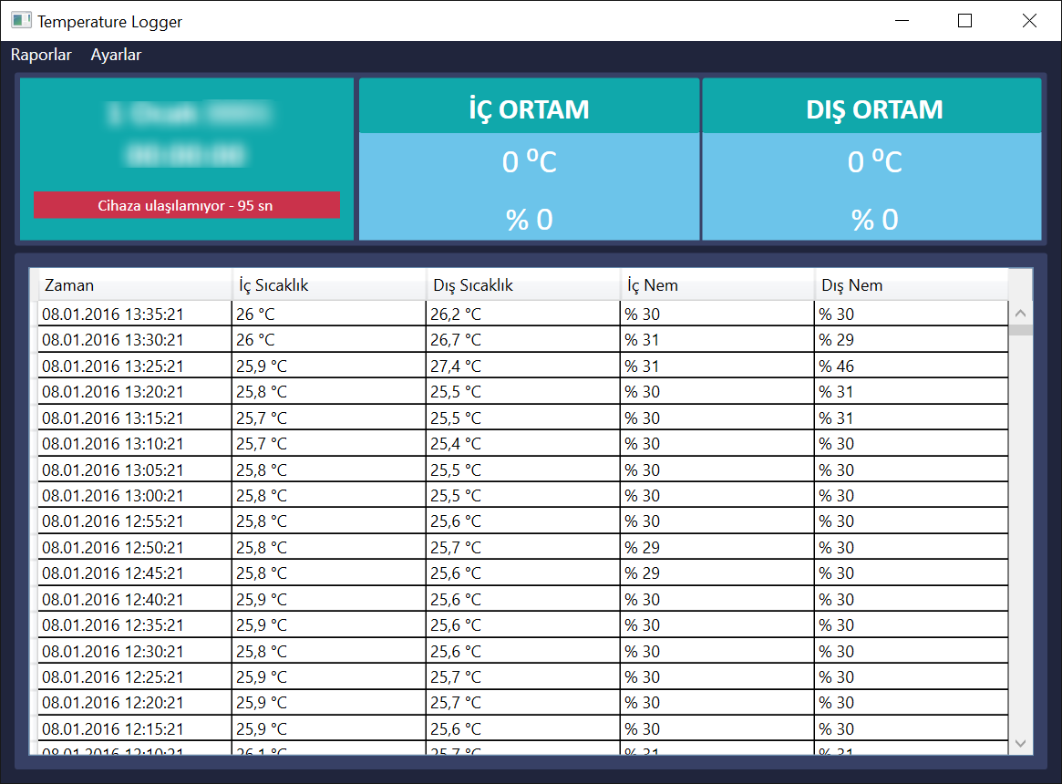 Arduino ile eczanedeki dolap içi ve dolap dışı sıcaklıkları DHT22 sensörü ve DS1302 RTC zaman değerleri kullanılarak belirlenen aralıklarda SD Kart Modülü ile kart içerisindeki bir txt dosyasına ölçüm zamanlarıyla birlikte yazılmaktadır. Bu sıcaklık verileri güncel olarak da PCD8544 ekranda da gözükmektedir. Sistem USB kablosu ile bilgisayara bağlandığında seri port üzerinden SD kart verileri çekilip bir raporlama ekranı oluşturulmakta, ayarlar bölümünden otomatik sensör kayıt sıklığı değiştirilebilmekte ve DS1302 saat ayarı yapılabilmektedir.