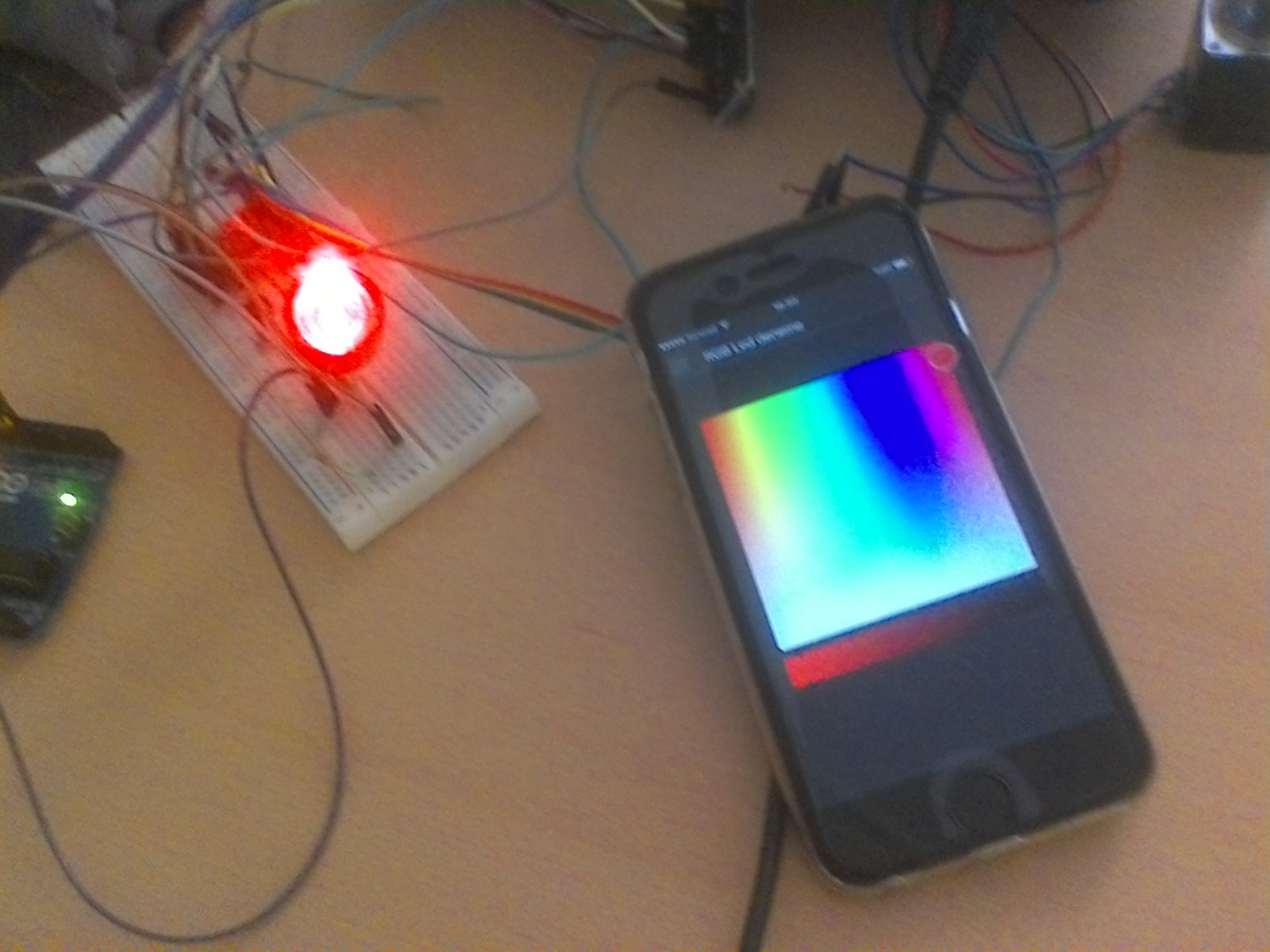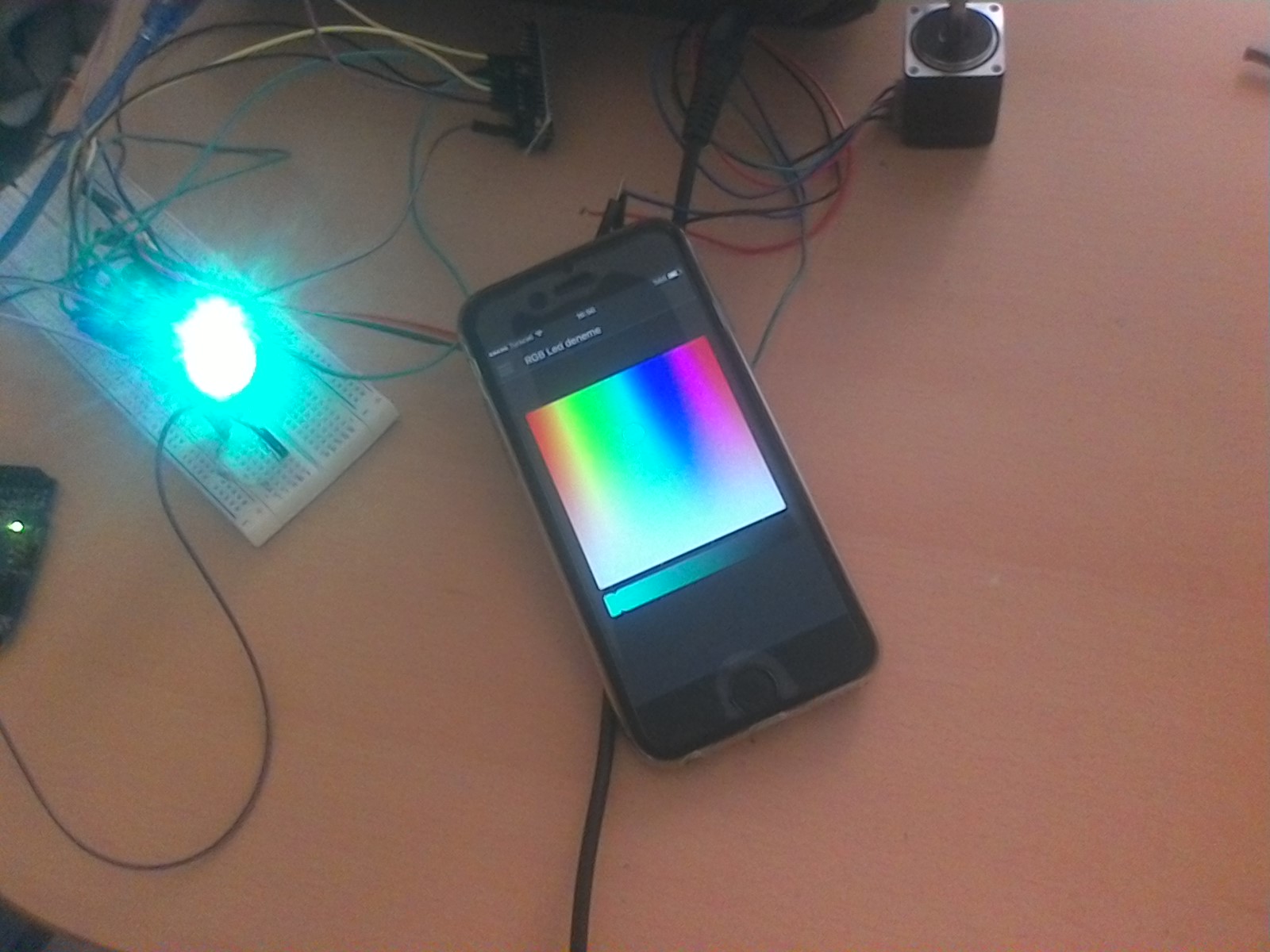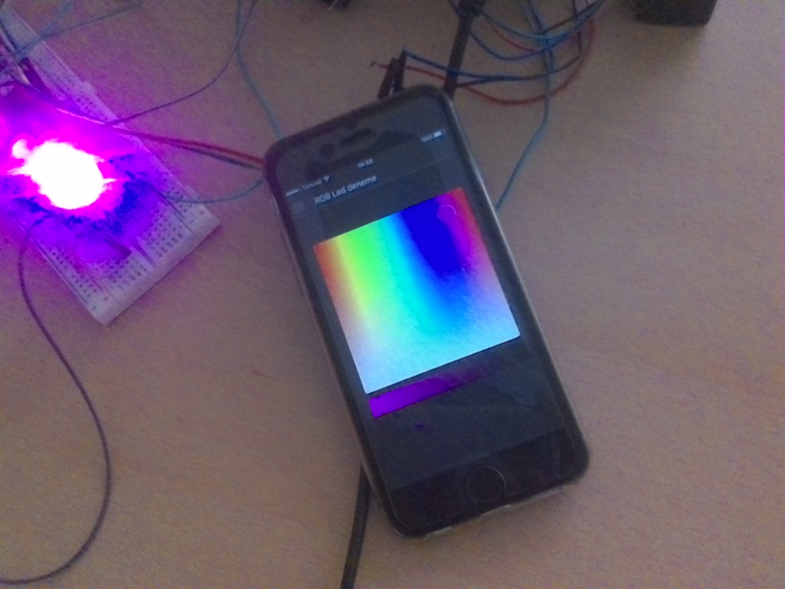 ESP8266 Wi-fi modülü ile Arduino'nun bir Server olması sağlanmaktadır. IP yardımıyla kendisine bağlanan Client'ların isteklerini işleyip geri yanıt göndermektedir. Telefonda yazılan küçük bir socket programı ile Arduino'ya mesajlar gönderilmekte ve bu mesajlara göre RGB led kontrolü sağlanmaktadır.